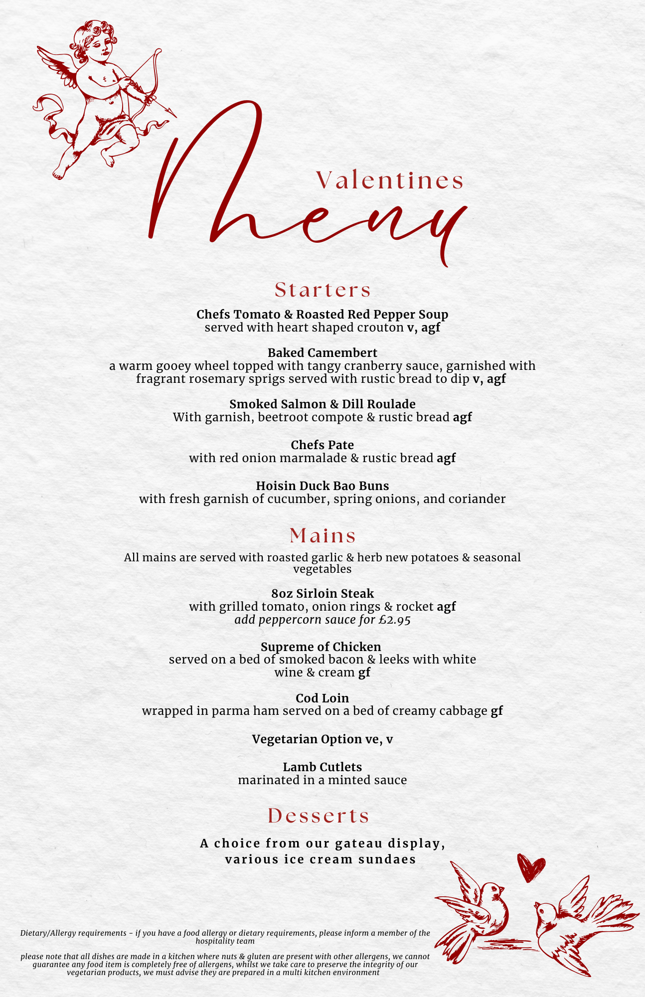 The delicious fresh ‘home-cooked’ menu is changed four times a year and focus’s heavily on originality and ‘working’ those taste buds!, which is as interesting as it is delicious. Children’s meals are also available on request.